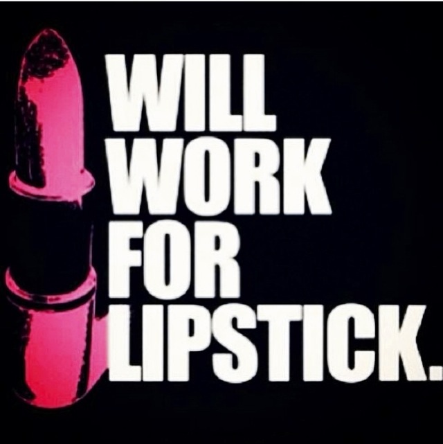 Will Work For Lipstick π November 6, 2013November 7, 2013 • SugarLips&StyleTips β”Lipstick is really magical. It holds more than a waxy bit of color – it holds the promise of a brilliant smile, a brilliant day, both literally and figuratively.”~ Roberta Gately I would have to Agree!!!! 32.602226 -85.433530 Share this: Share on X (Opens in new window) X Share on Facebook (Opens in new window) Facebook More Email a link to a friend (Opens in new window) Email Like Loading... Related