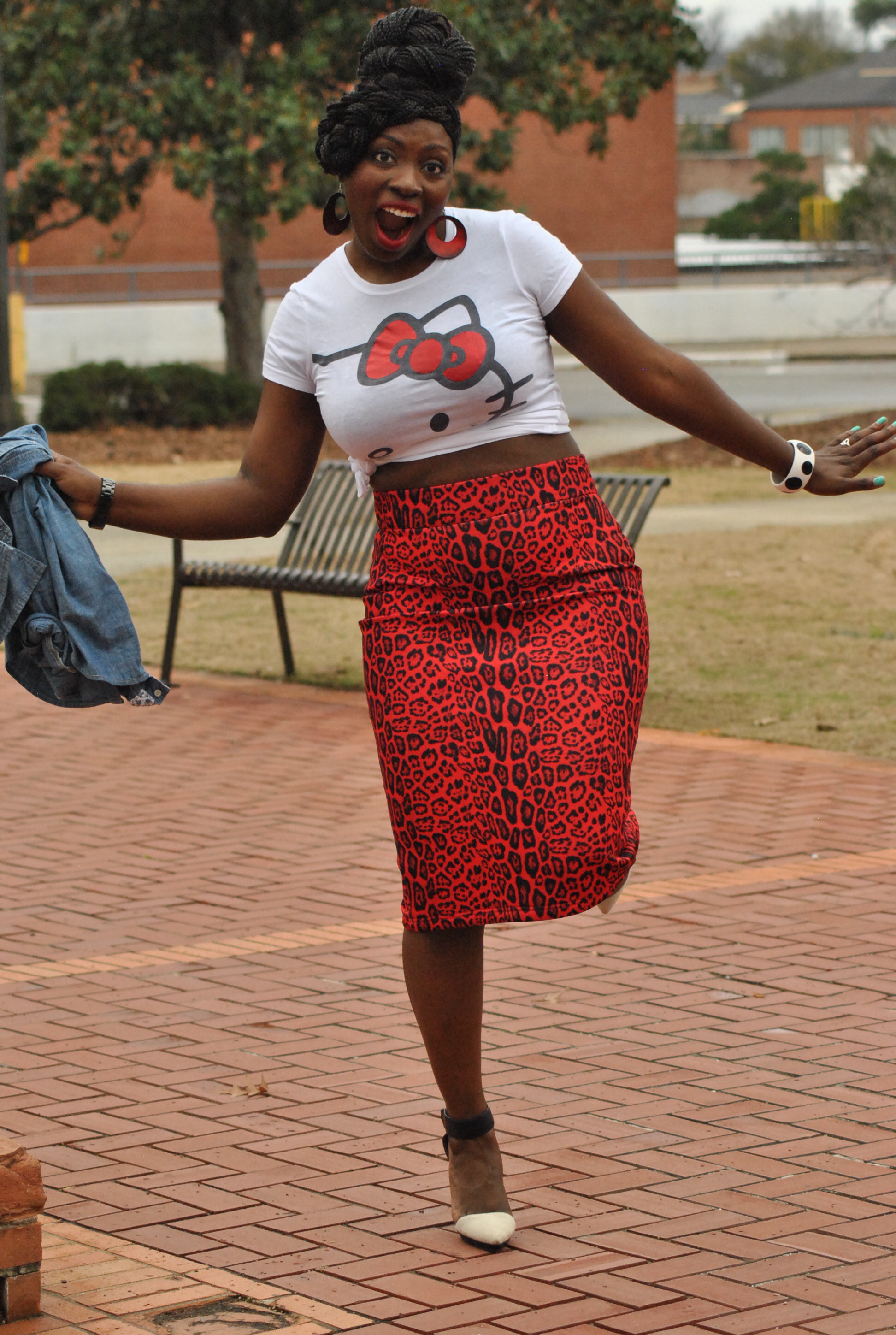 Red Leopard Print Skirt-RiverIsland; Pumps-Freepeople.com (Jeffrey Campbell); Lipstick-Kaoir (Show Off)