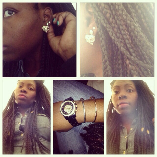 Heart Earrings-Candies (gift from my niece); Watch-Michael Kors store in Atlanta,GA; Beads in my hair-boutique in Decatur GA; Bangles-old pieces
