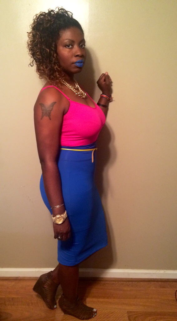 I’ve found myself gravitating to color blocking in Fashion here lately! Mostly because I’m obsessed with COLOR (period)!!!!!!! It just amazes me how you can literally put any of your favorite colors together and GO!!! Last night I paired hot pink with royal blue with a splash of lime green!~XoXo #sugarlipsandstyletips #Lipstick-Kaoir (Harlem Night)
