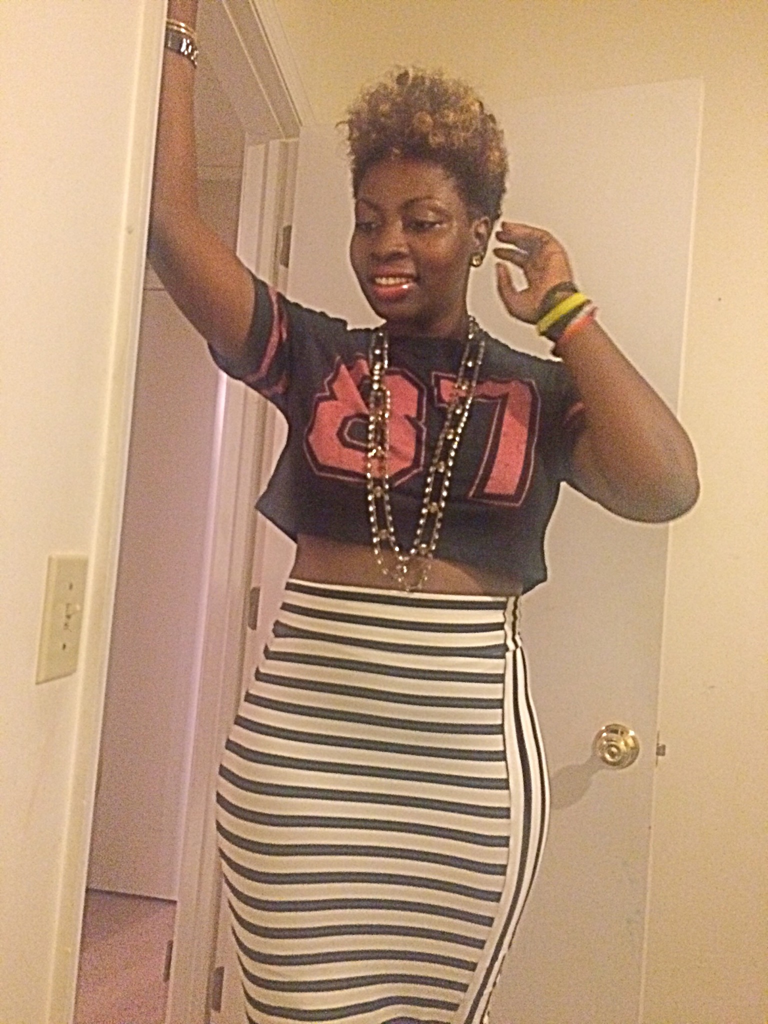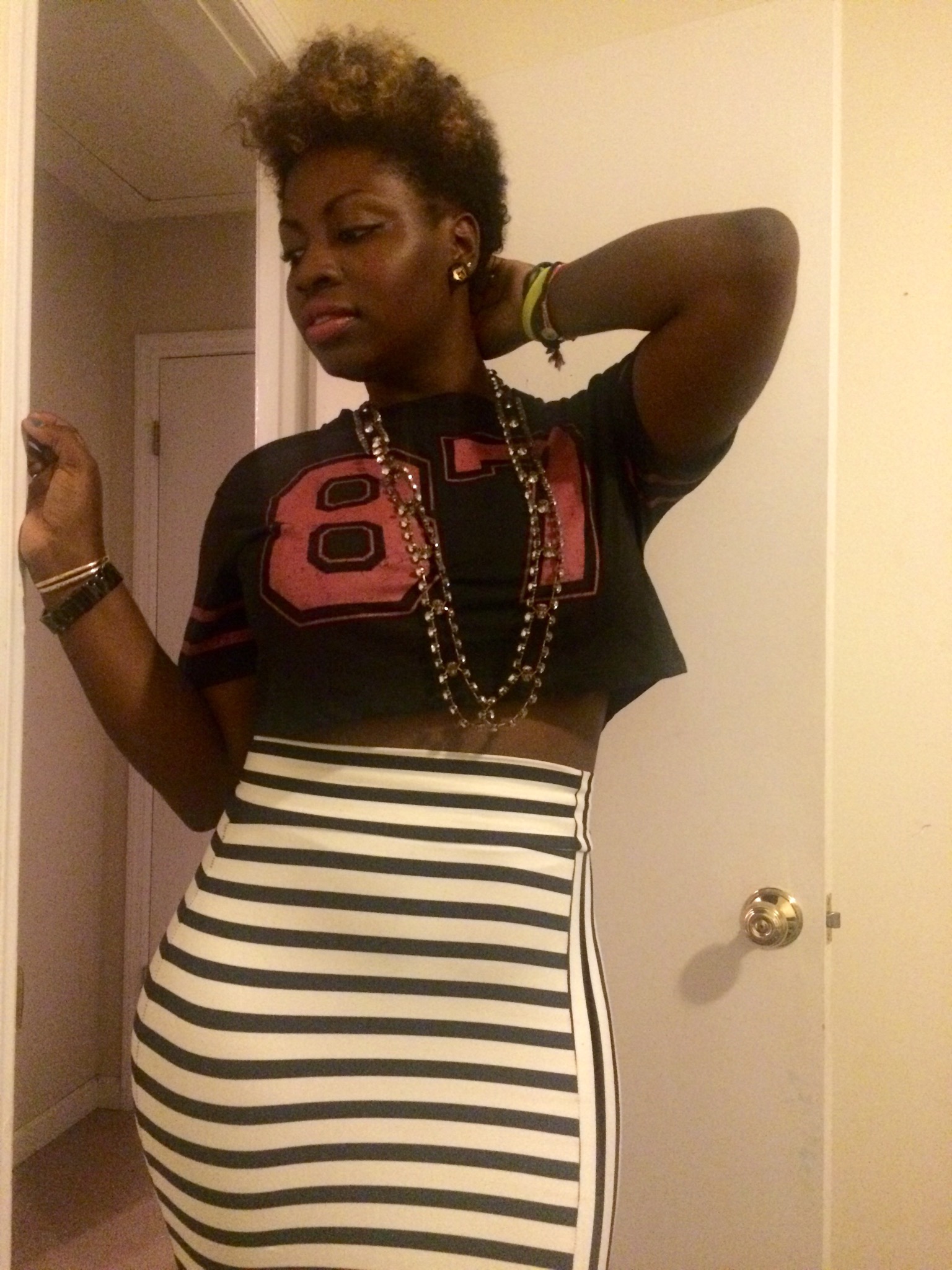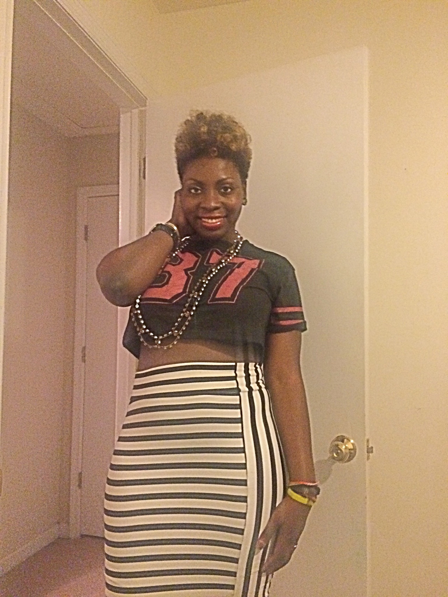 Last night I rocked this cute crop top that I found for only $3.00 at Ross! I grew up in the 80’s so I figured that I would represent for my 87 baby’s lol (close enough). I paired this cute crop with my striped black and white midi skirt from BeBe. You dolls feeling this look!?~Xo #sugarlipsandstyletips