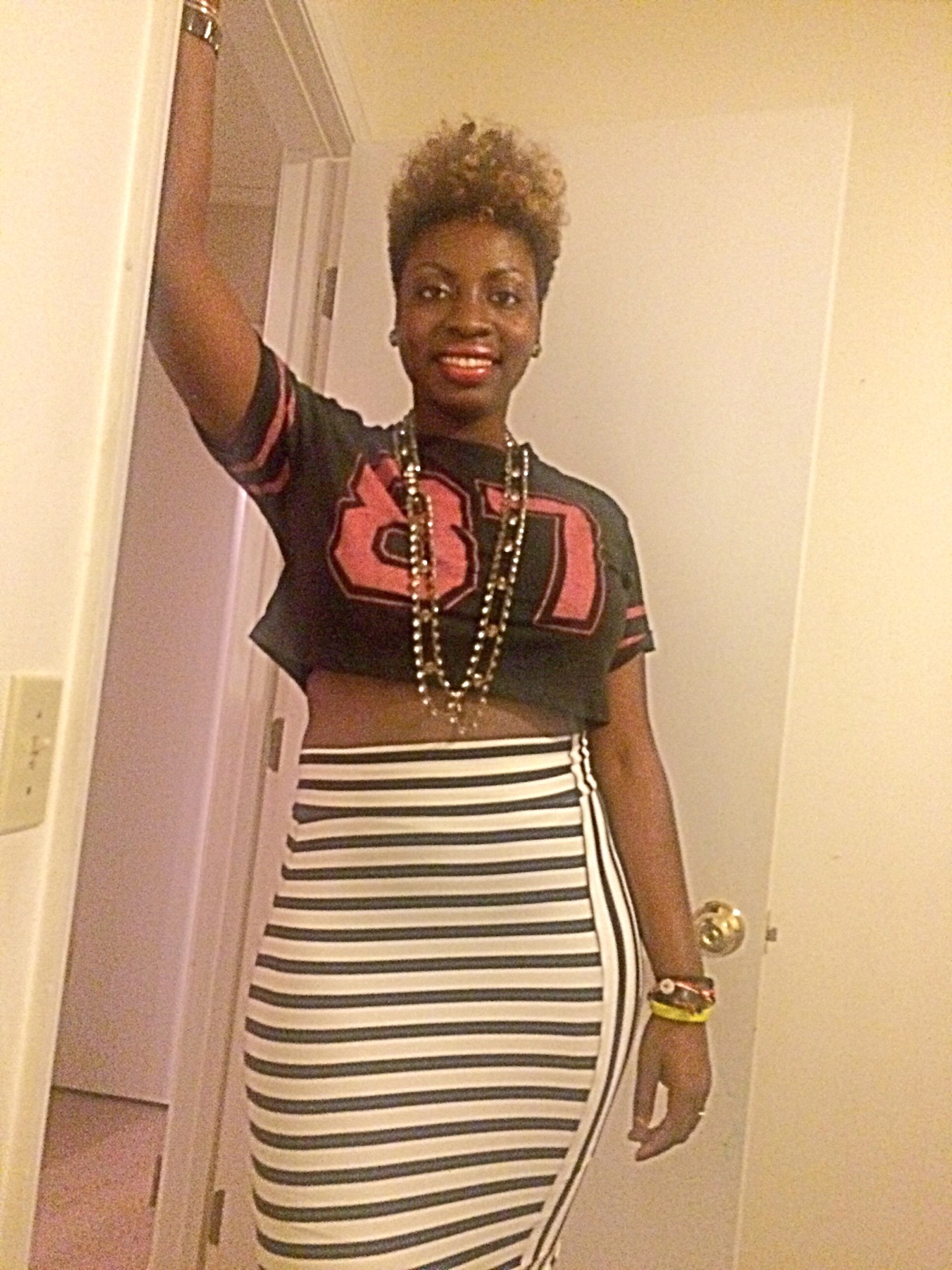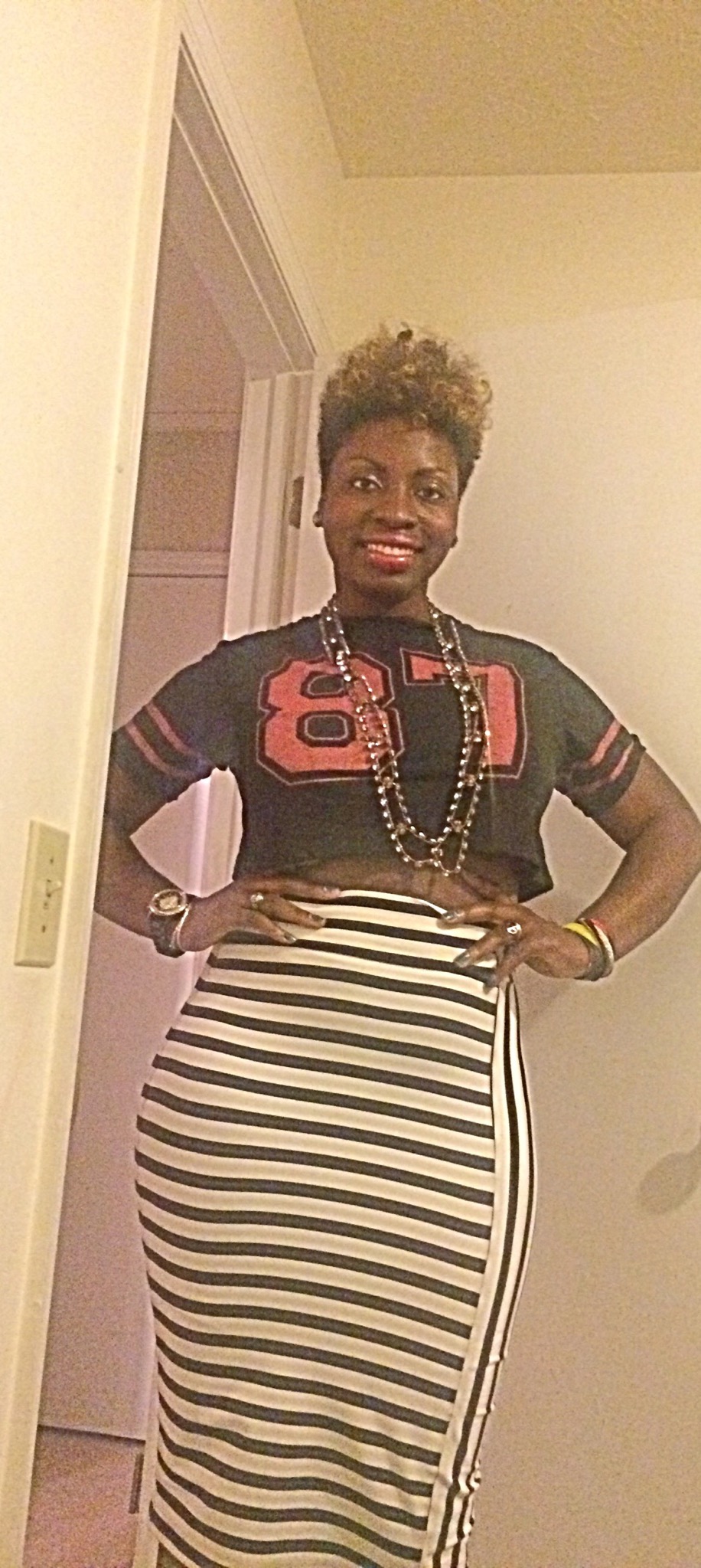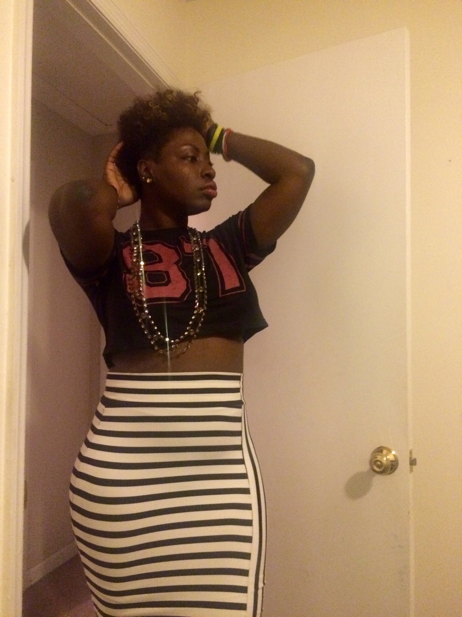 Last night I rocked this cute crop top that I found for only $3.00 at Ross! I grew up in the 80’s so I figured that I would represent for my 87 baby’s lol (close enough). I paired this cute crop with my striped black and white midi skirt from BeBe. You dolls feeling this look!?~Xo #sugarlipsandstyletips