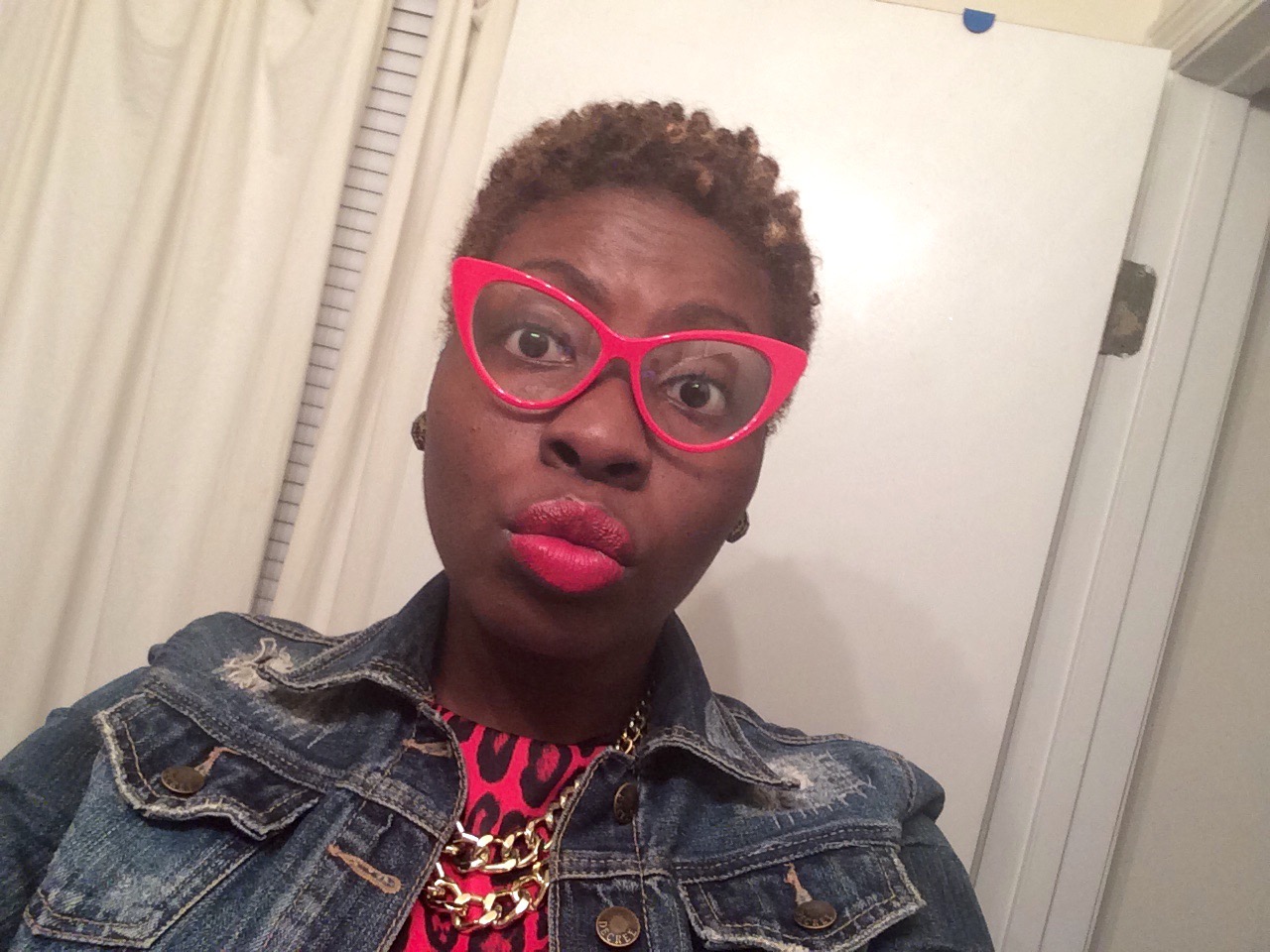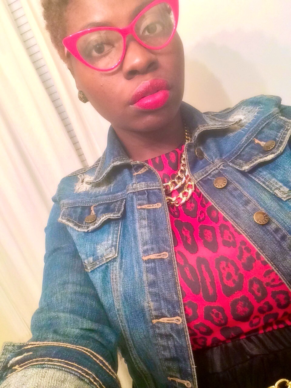 A Lot of people have been telling me that my style is Sassy lately… Yesterday was no exception. I’ll take it! Sassy Chic it is! Yesterday’s look was achieved by pairing my red leopard print crop from river island with my black tulle skirt ($9.00) from sammydress.com. I completed this look with a BOLD lip, denim jacket, gold accessories, and my Sassy Cat Eye glasses! What are some of your favorite Sassy pieces!?~Xo #sugarlipsandstyletips