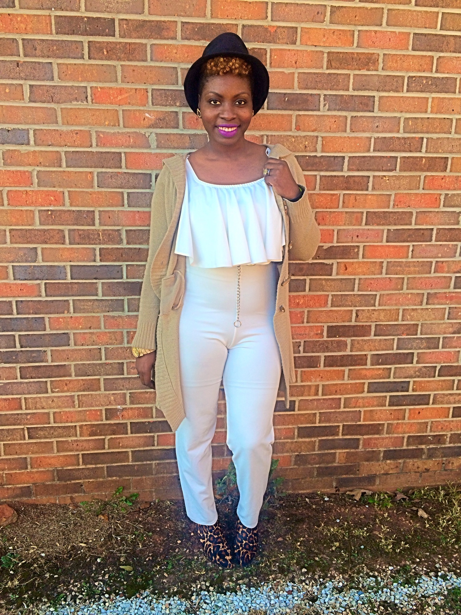 Every year that I get to see Thanksgiving day and spend time with my family… I am extremely Thankful! This year I rocked this white jumpsuit from http://www.five13studio.com with leopard print booties. On my lips I’m rocking heroine (Mac) which is one of my favorite lippies right now! I Topped this look off with a black fedora and leopard print earrings… I want to add that I am so very thankful for whomever invented LIPSTICK! Thank you, thank you, thank you!~Xo #sugarlipsandstyletips