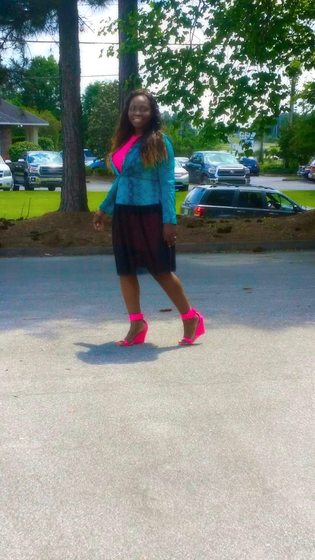 I paired the pink wedges with a black tulle skirt from sammydress.com, a hot pink two piece skirt and top from babesandfelines.com, and this awesome reptile print blazer from five13studio.com!