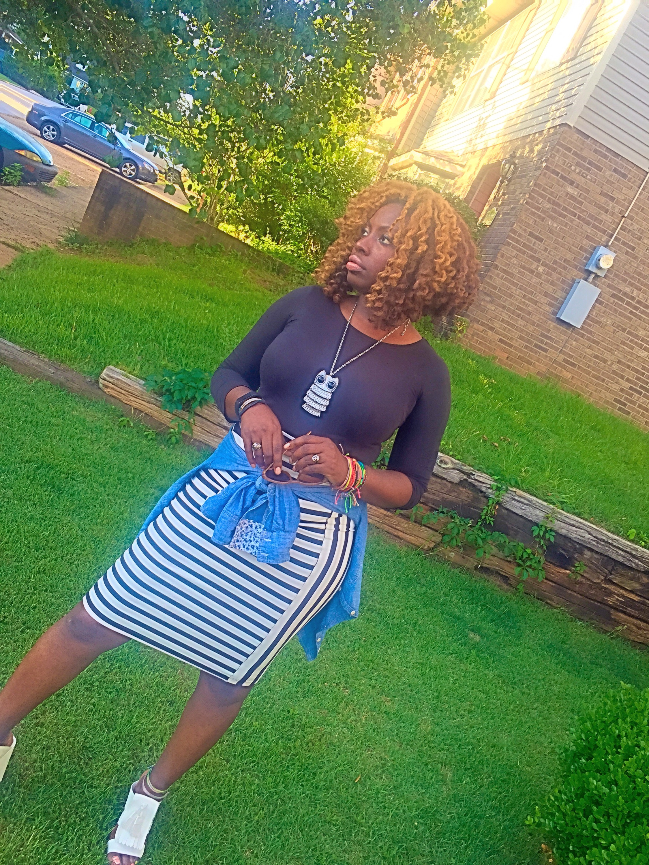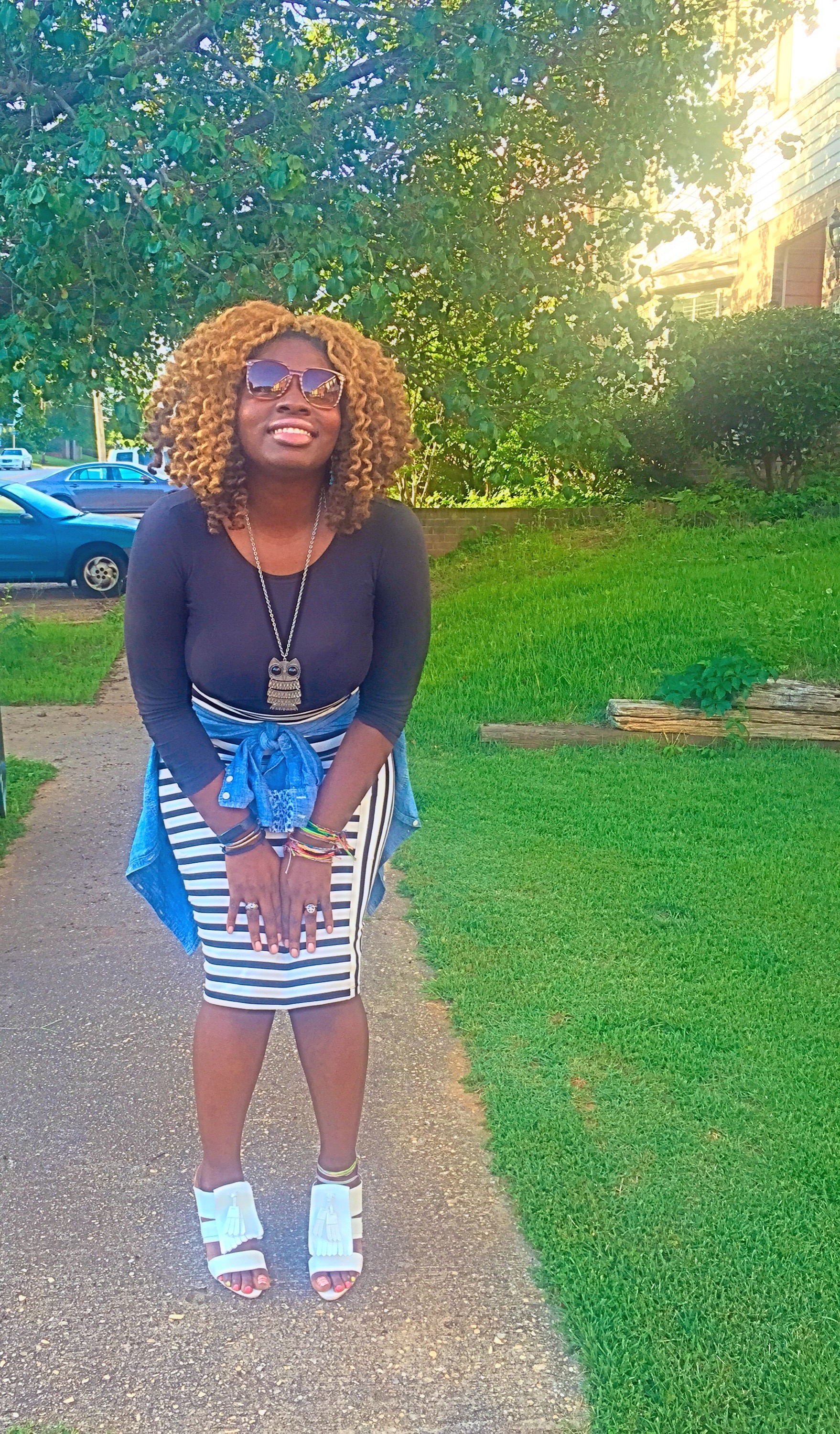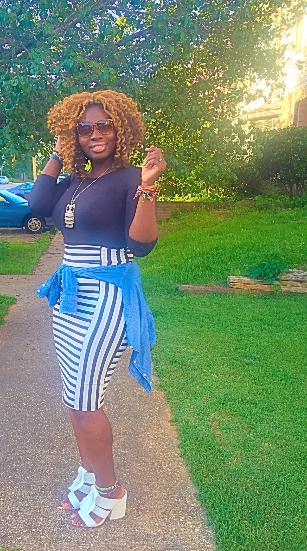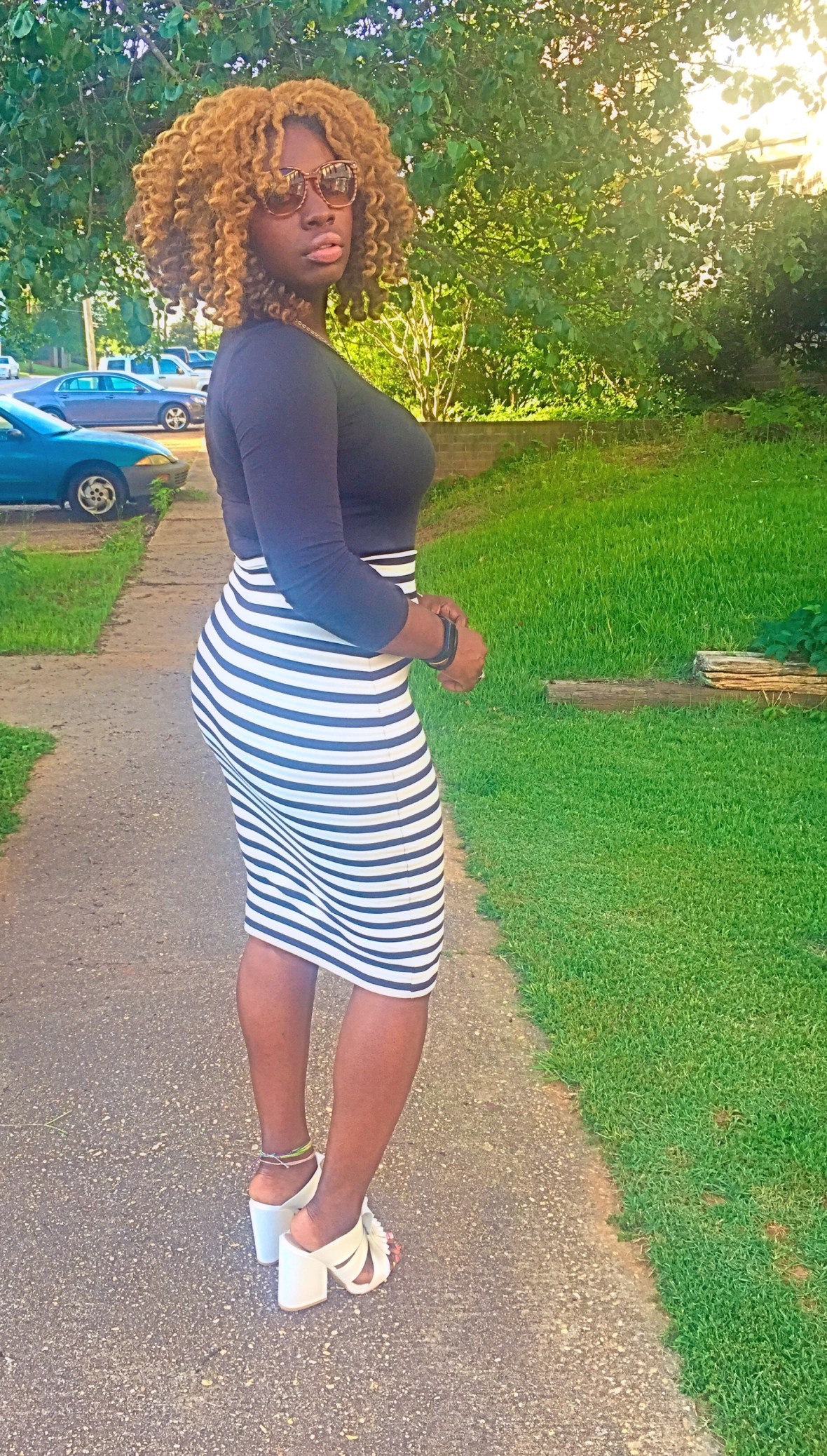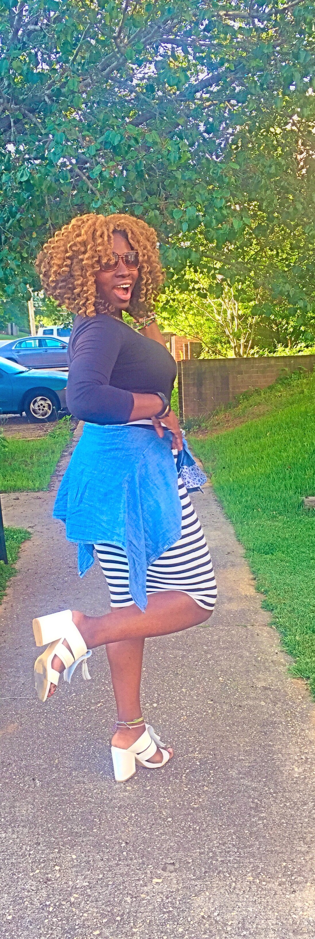 =The perfect combo! Today was a beautiful day! I switched things up a bit and wanted to go with what I call a classic combo with a 70’s flare! I love these chunky heels from http://www.nasty gal.com and this stripe skirt is one of my favorite pieces from Bebe! What do you dolls think of this look!? ~XO #sugarlipsandstyletips