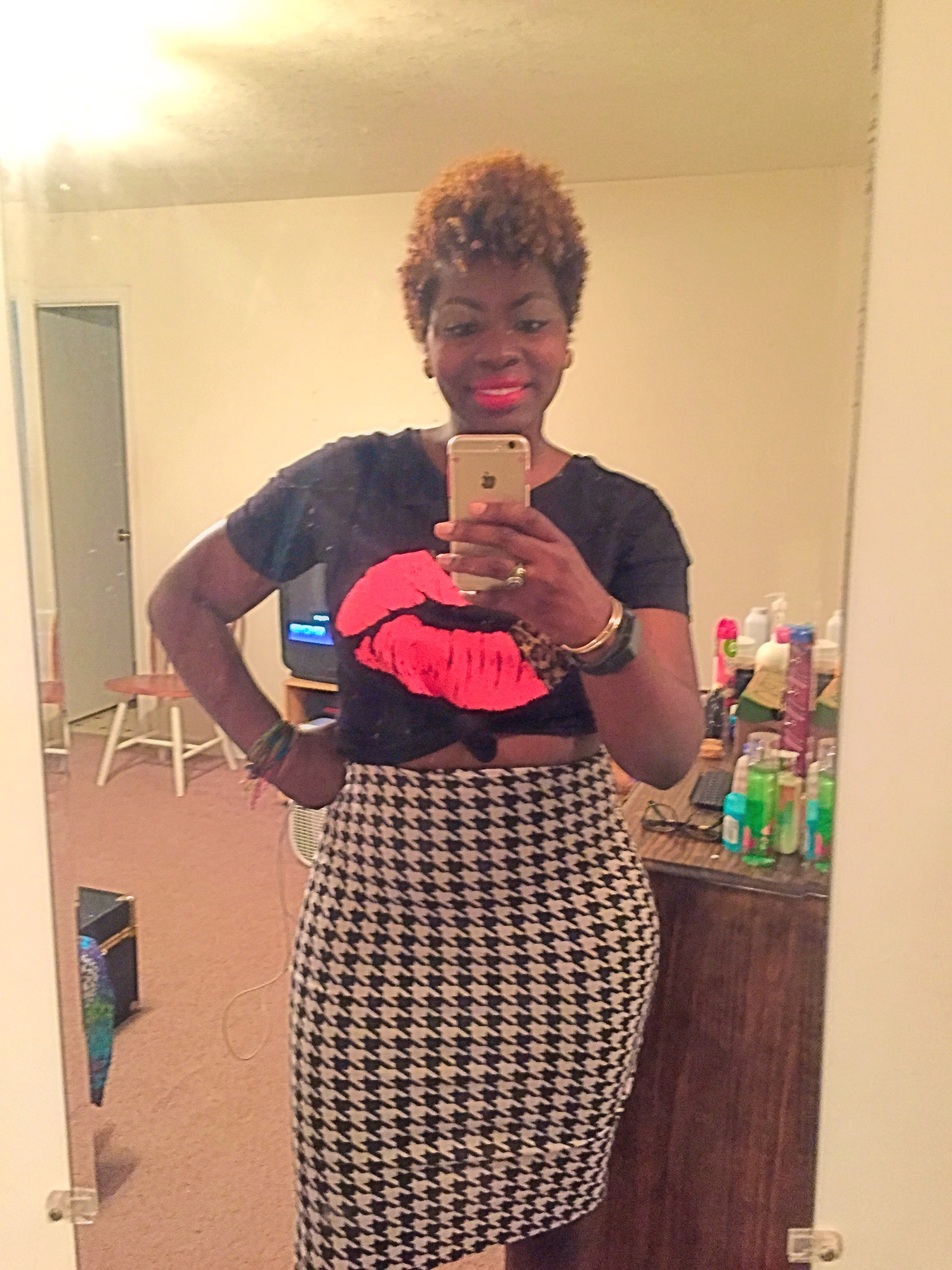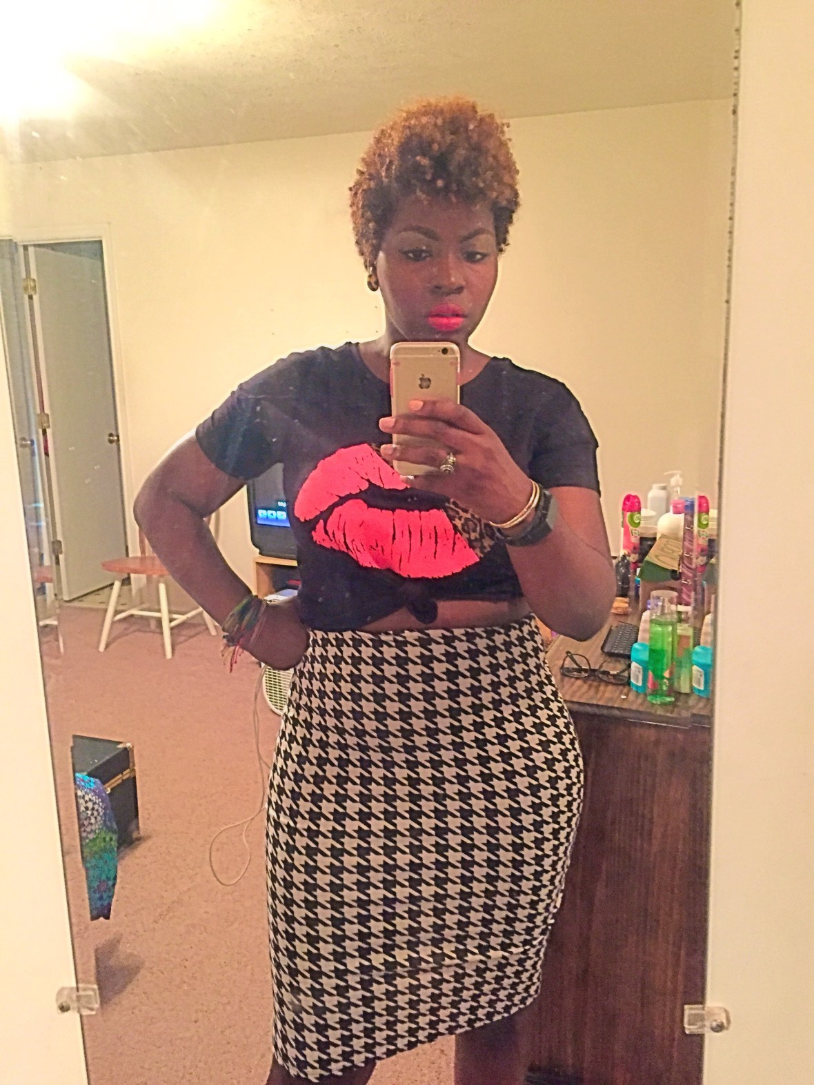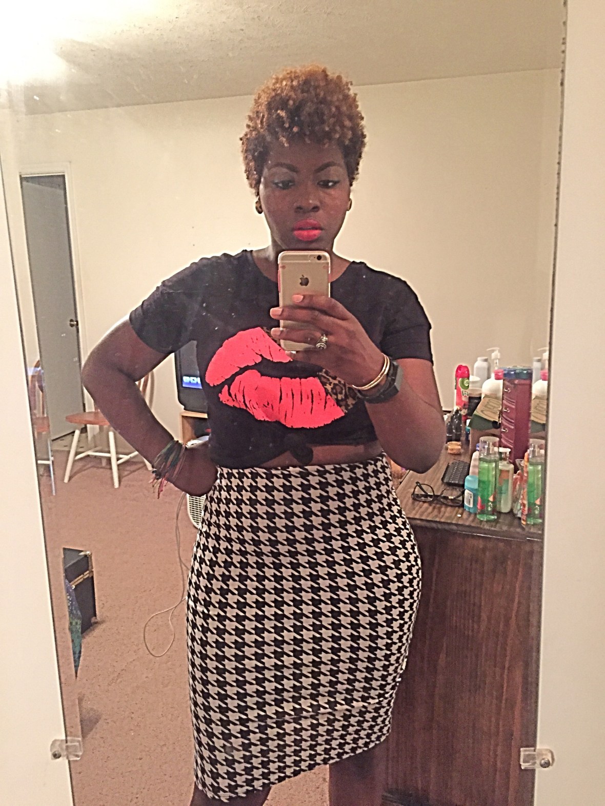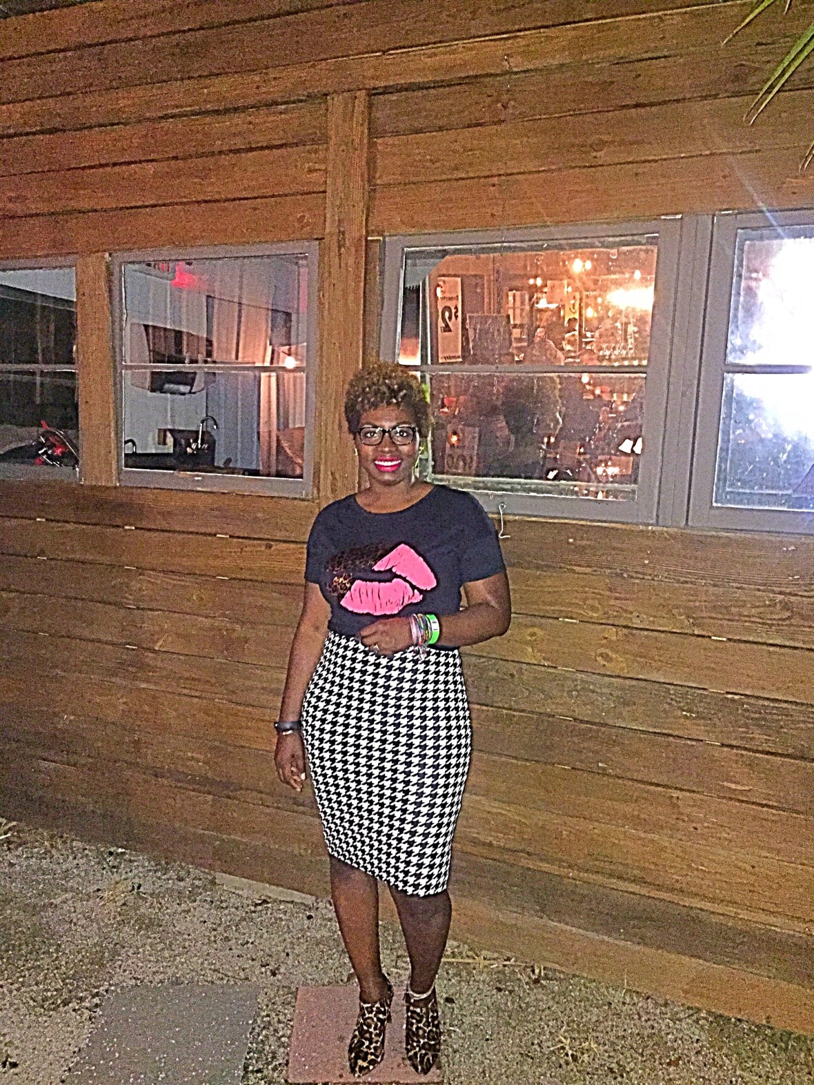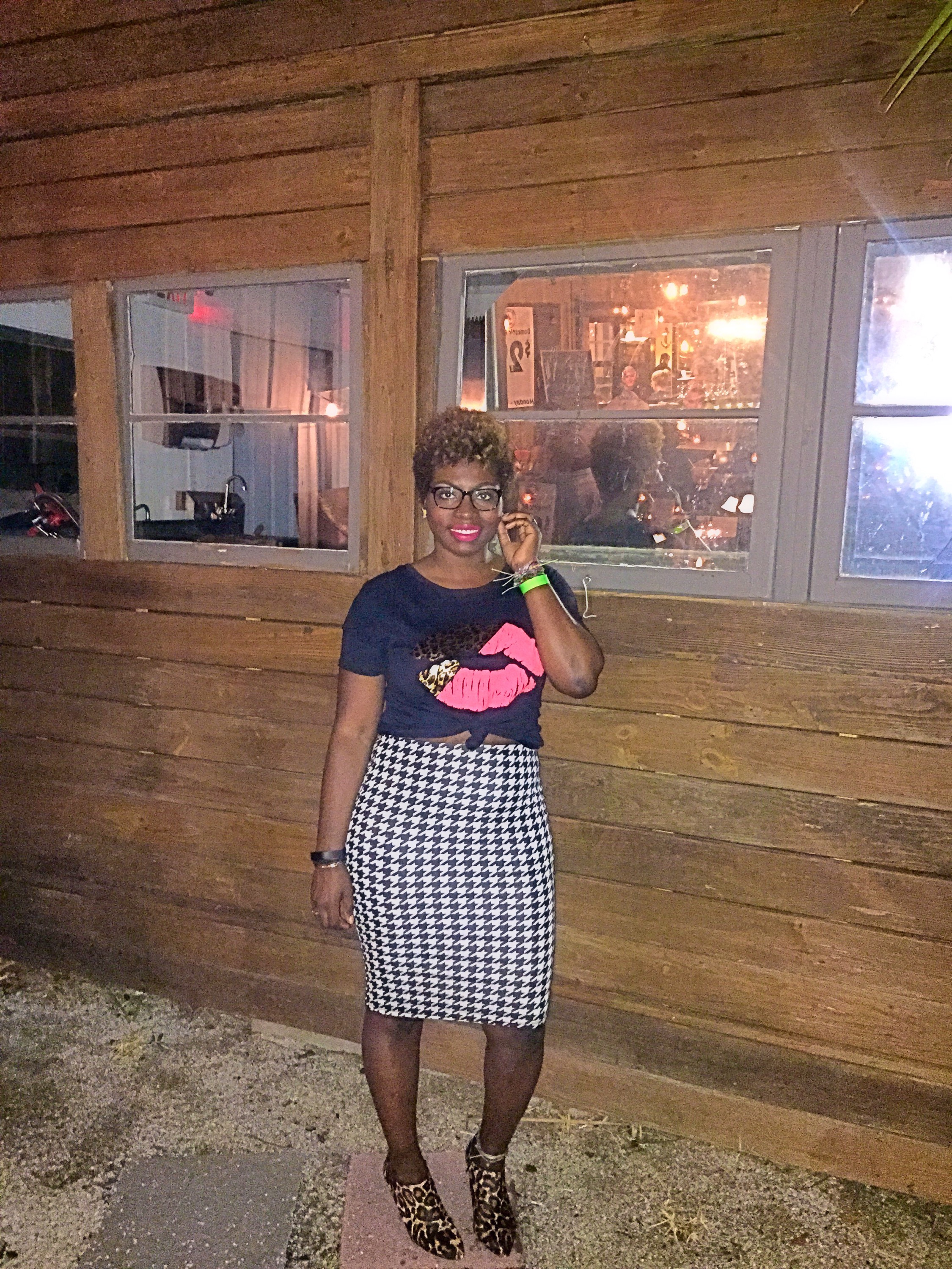 So I attended a spoken word/poetry event last night. Pretty fun, minus the rain, as the event was outside. I decided to rock this AUsome lippie shirt and a Houndstooth skirt! I’m rocking Relentlessly Red on my lips by Mac! I love mixing prints!~XO #sugarlipsandstyletips