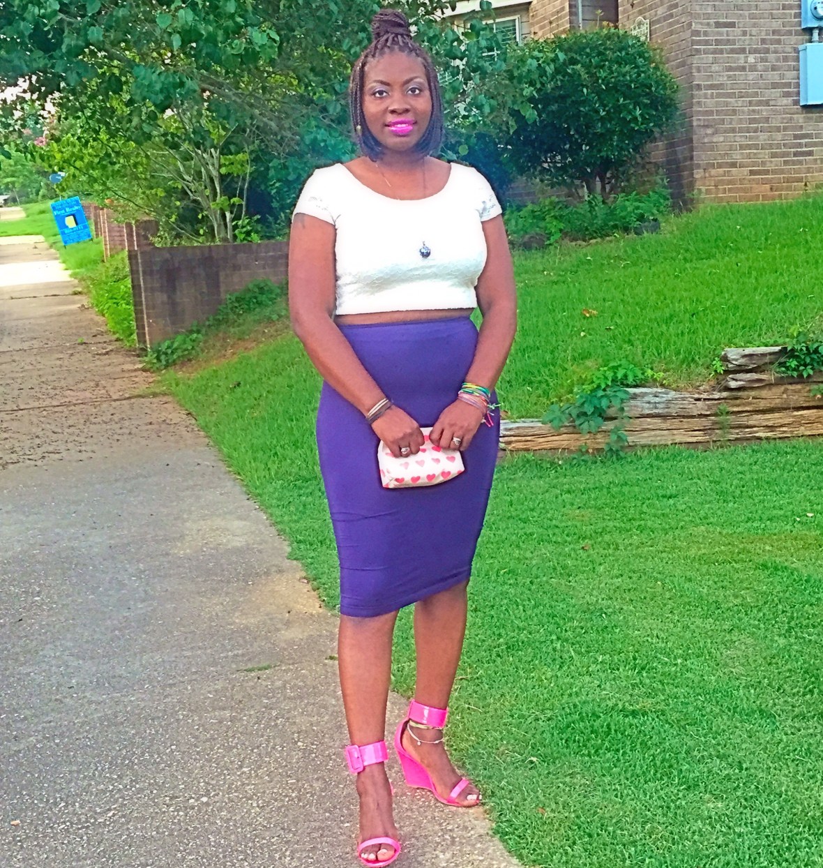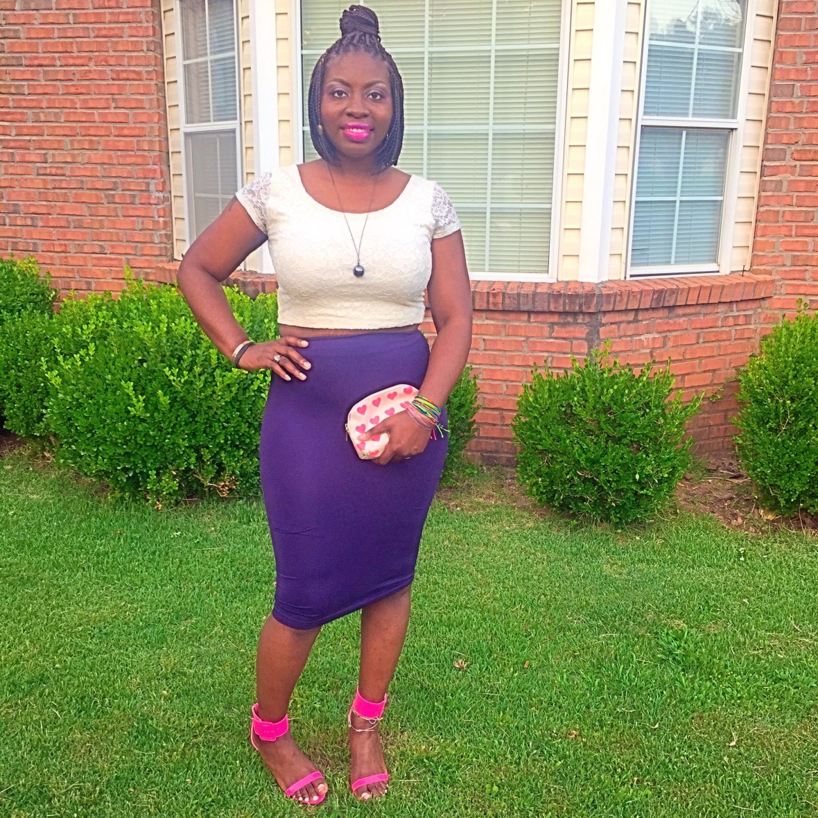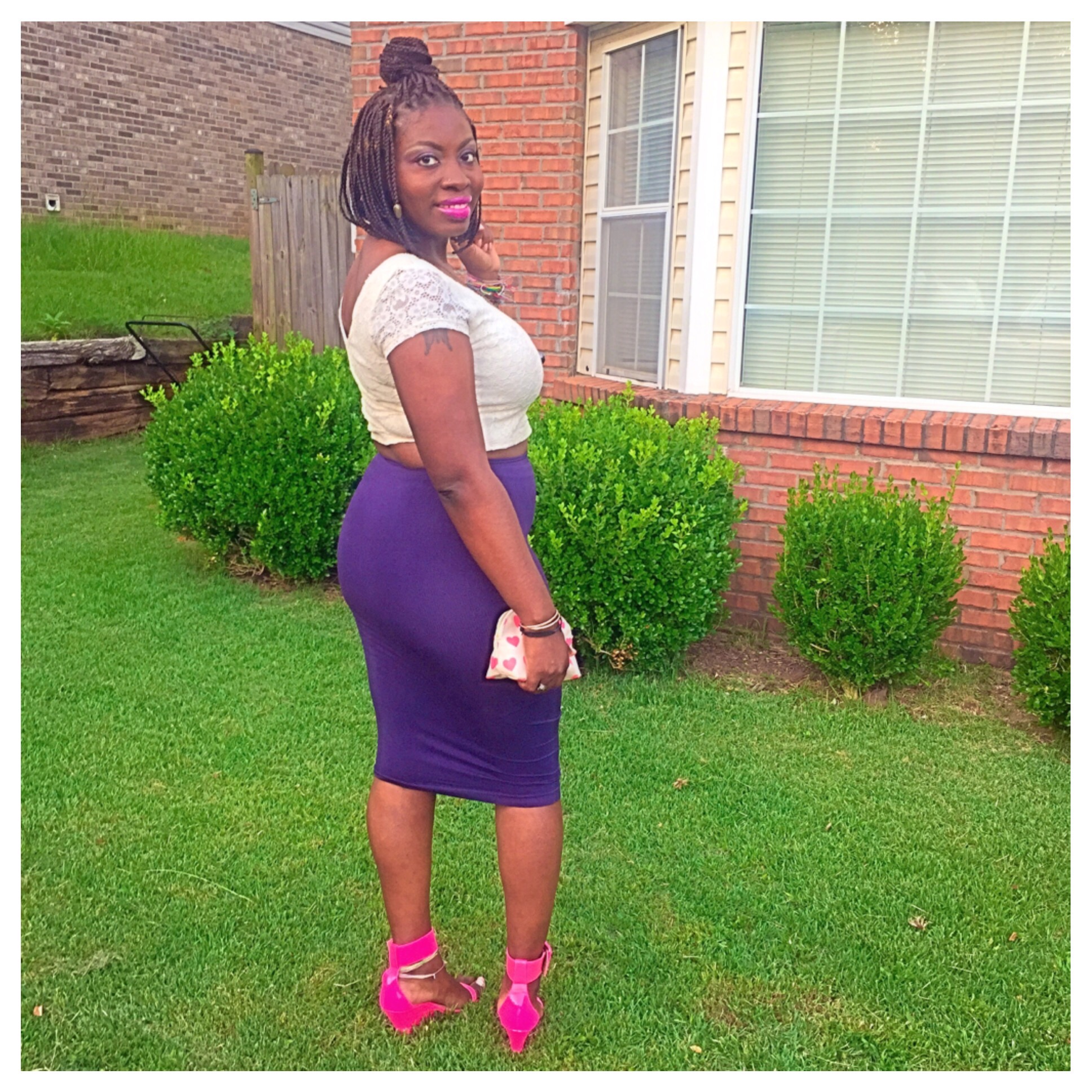 After a long day of serving/volunteering yesterday with my church… I decided to get dressed and go to dinner with my little cousin for her birthday! I decided to rock this dark purple midi (babesandfelines.com) and lace top (target). I completed this look with my neon pink wedges and my little bag with neon pink hearts 💖 and of course a hot pink lippie!~XO #sugarlipsandstyletips