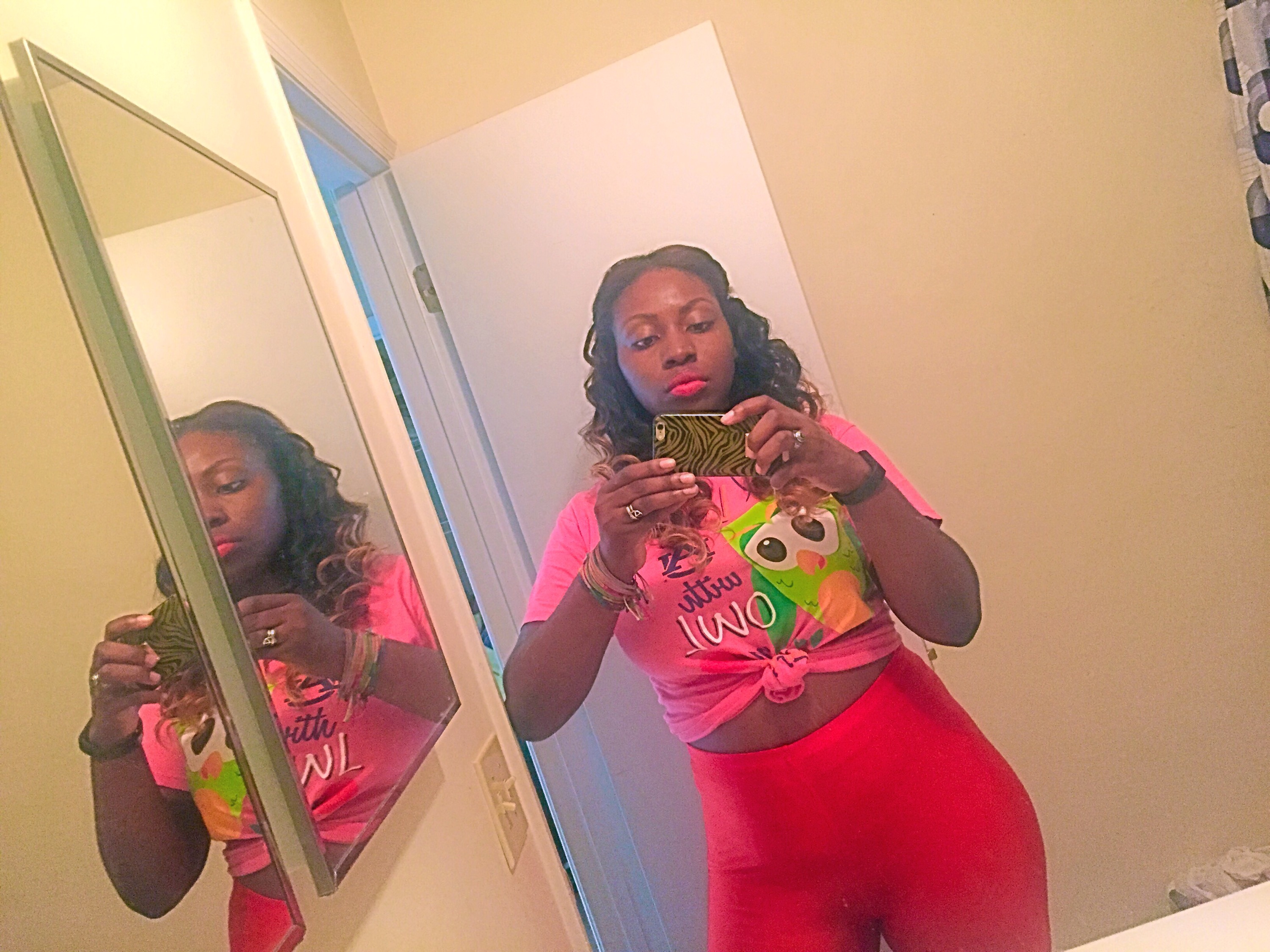 I started out with my old plain black leggings, then I remembered that I had the fun red ones… So I changed! #flawsandall