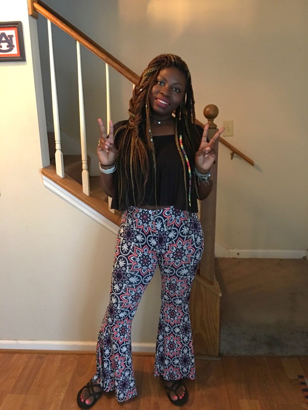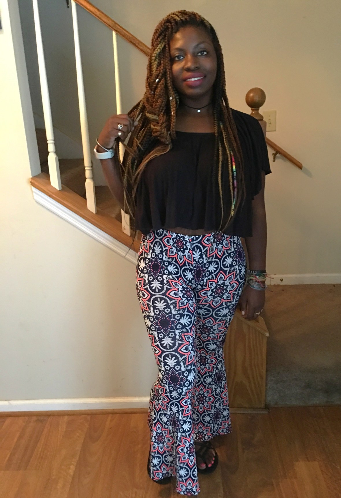 I love the print of these flared pants that I rocked today from Altard State!!! They definitely remind me of a Kaleidoscope, SO FUN!!!!! I paired them with this black crop top from BeBe…. I could have totally lived in the 70’s, I am obsessed with flared pants right now, and will always be obsessed with bright colors. How do you dolls like the flared pants look?~XO #sugarlipsandstyletips