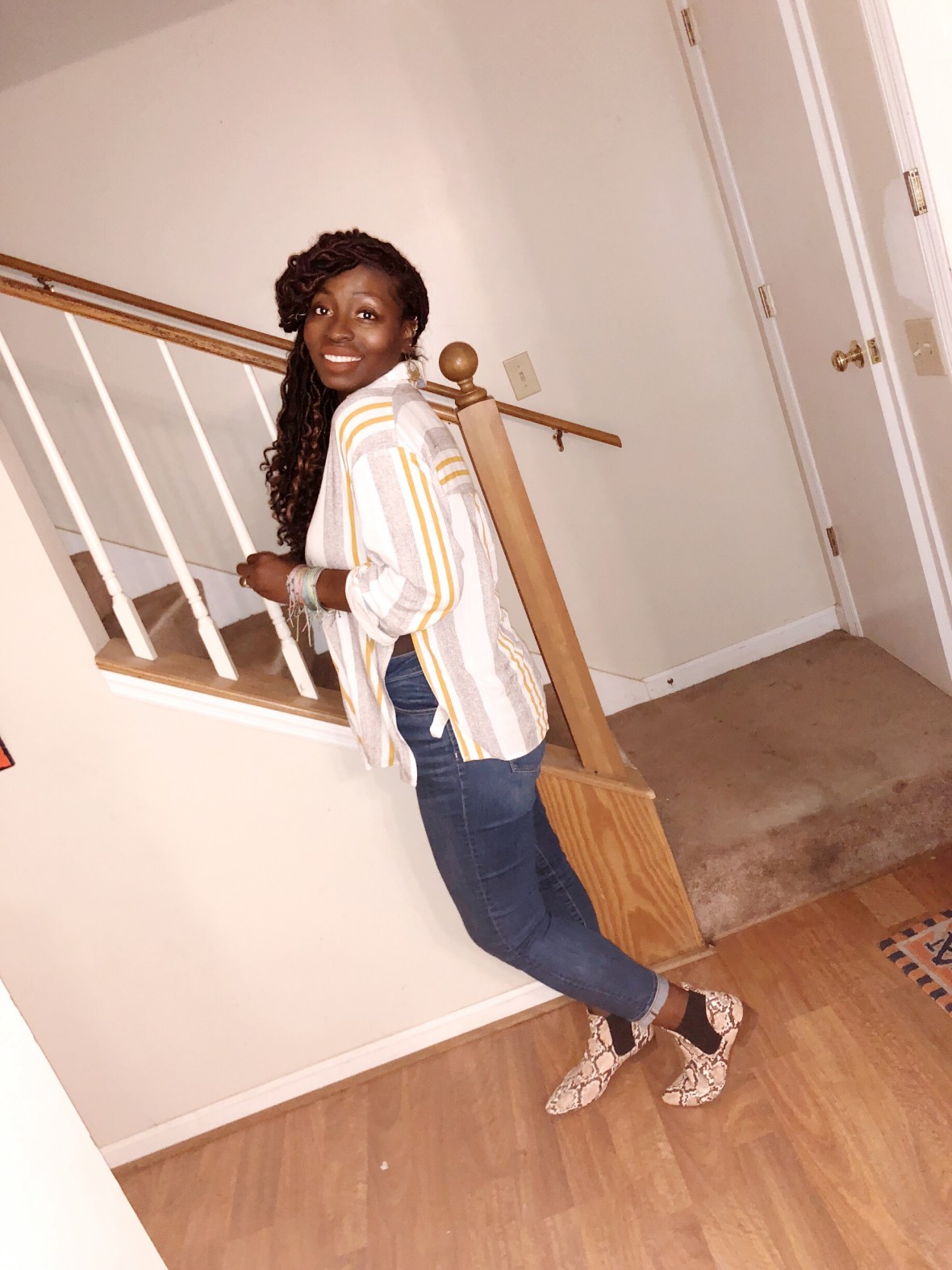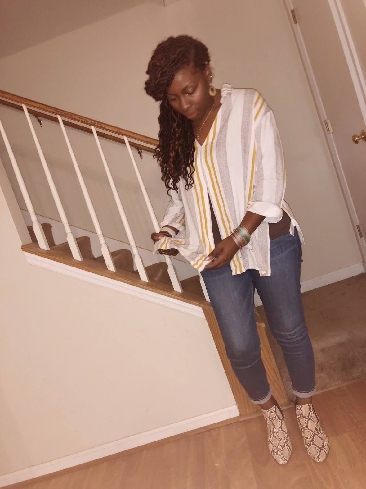 Mixing patterns and prints to achieve this look was so fun!!! 🌼#lizardthicketboutique #sugarlipsandstyletips #colourpopkae #americaneagle #snakeprint #funlook