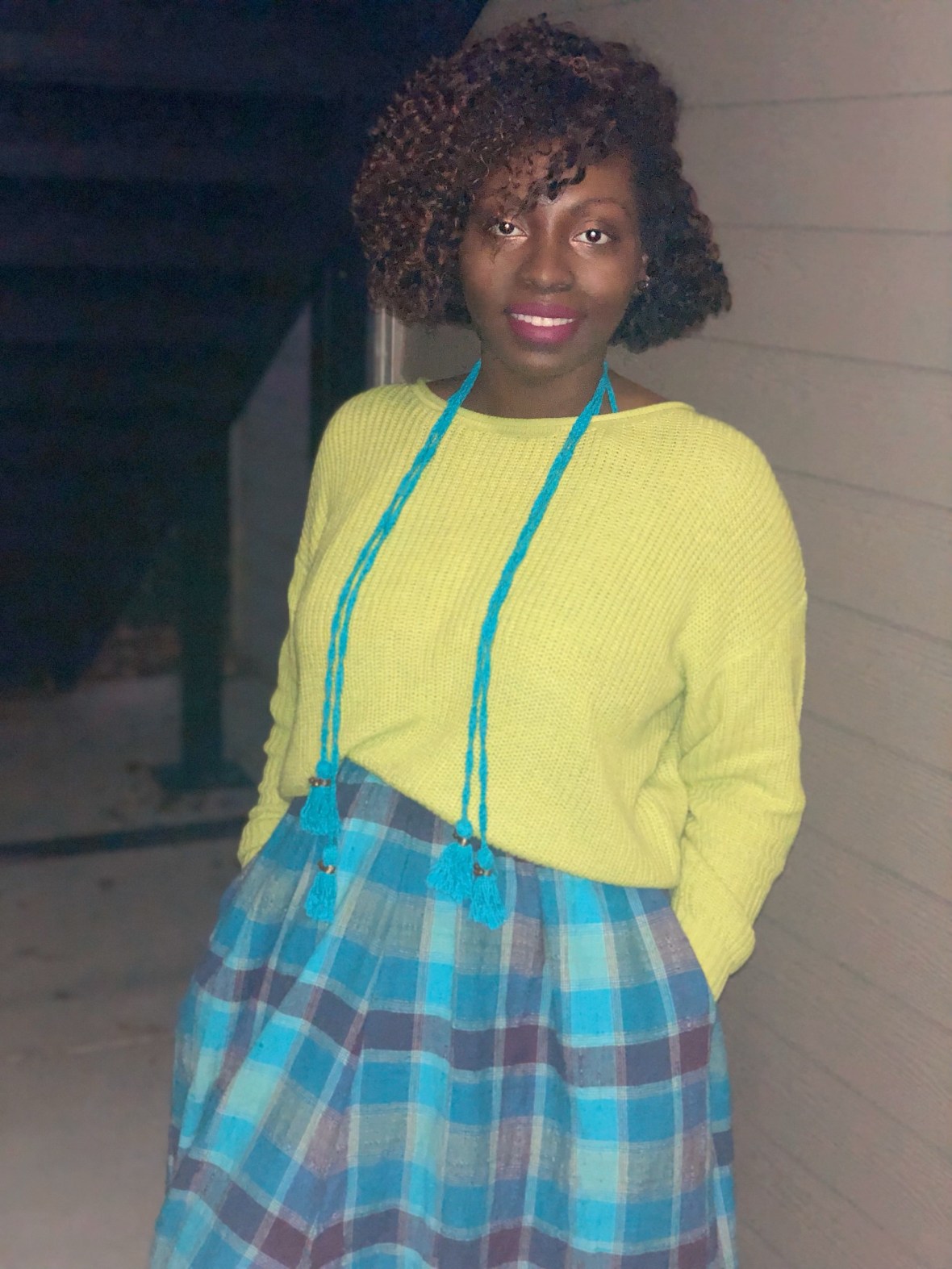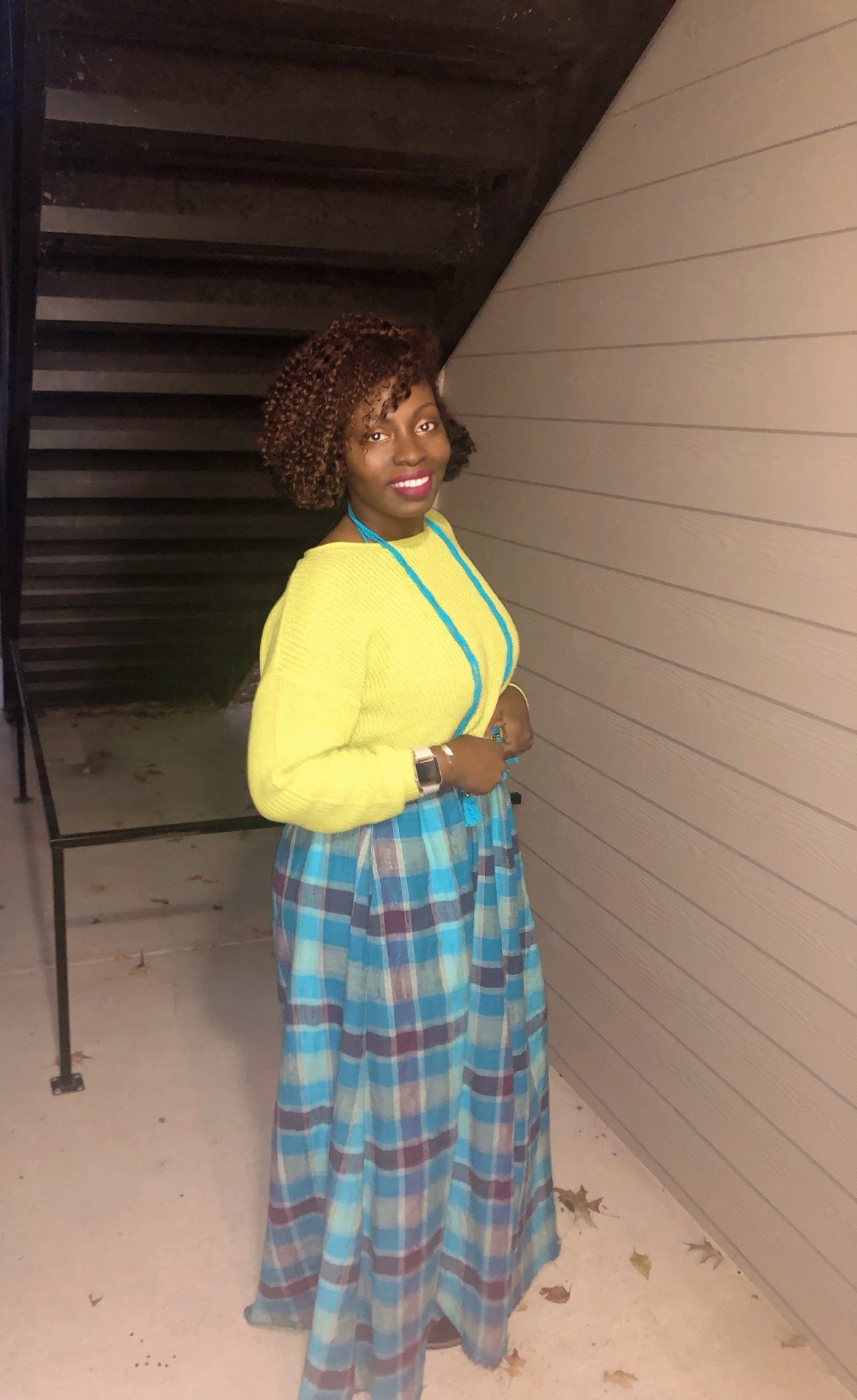 This neon sweater is a Target find, and the plaid is actually a dress from Free People that I wore as a skirt! My Lippie is Mac! What do you think of the look?